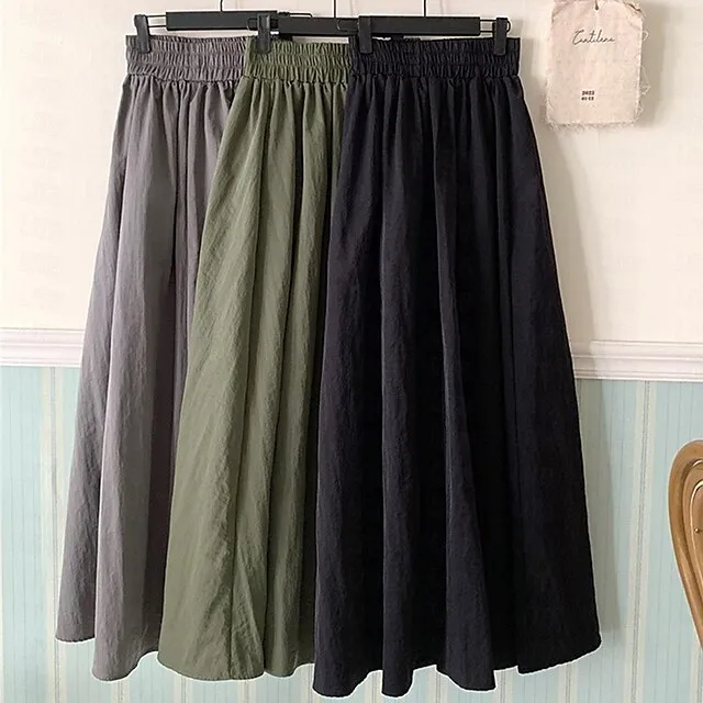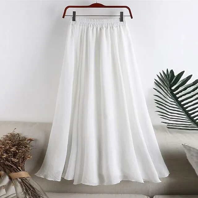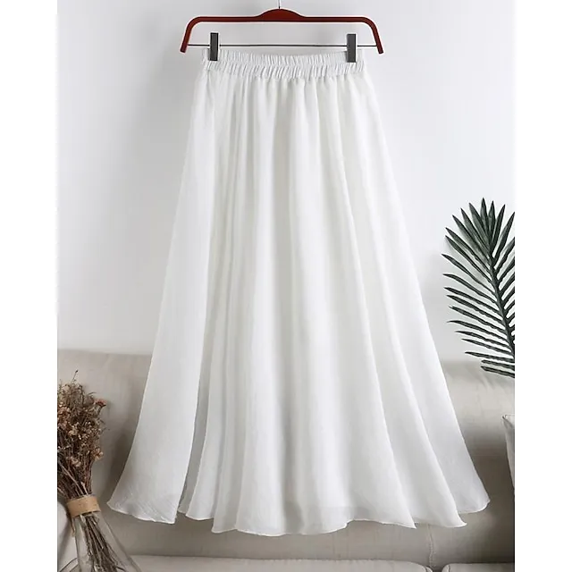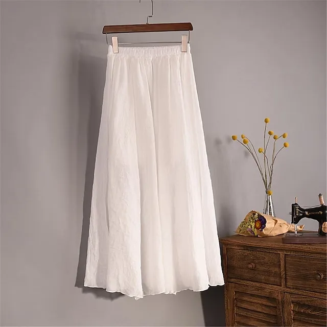Women’s Skirt Swing Midi Cotton Linen White Yellow Light Green Sky Blue Skirts Summer High Waist Basic Casual Casual Daily Weekend One-Size
