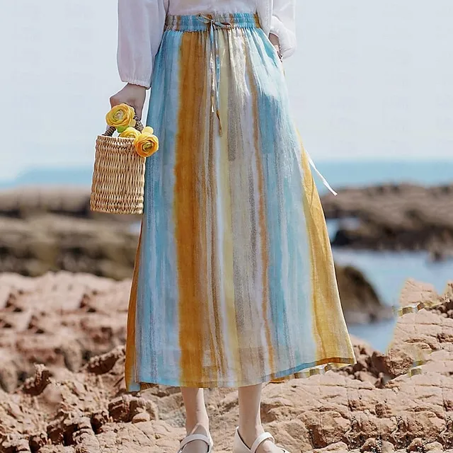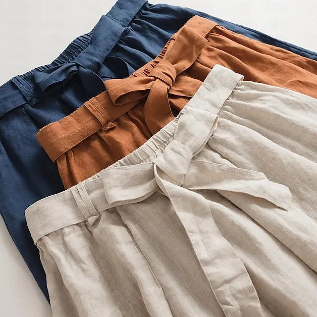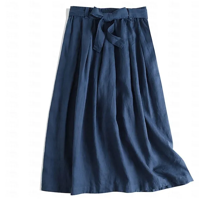 Women’s Skirt Linen Skirts Midi Cotton And Linen Black Pink Blue Khaki Skirts Summer Drawstring Lined Fashion Casual Casual Daily Weekend One-Size