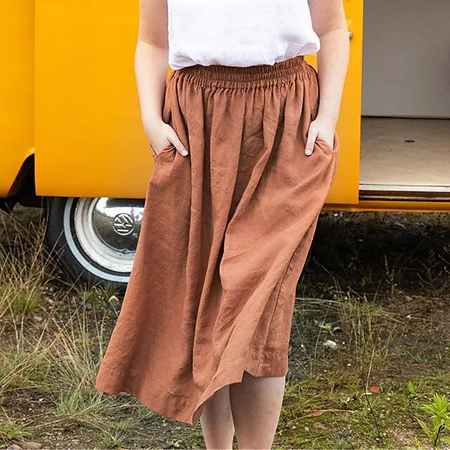 Women’s Skirt A Line Midi Linen Navy Blue Brown Beige Skirts Summer Basic Casual Casual Daily Weekend One-Size