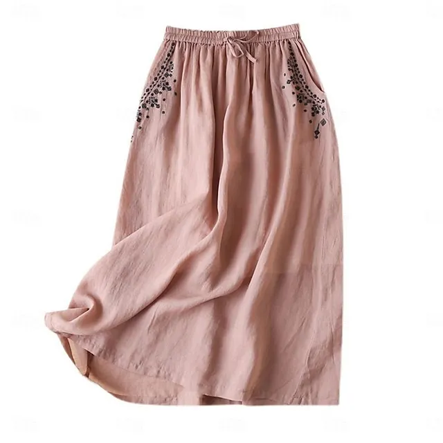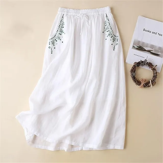 Women’s Skirt Linen Skirts Maxi Cotton And Linen Khaki Skirts Summer Embroidered Fashion Casual Casual Daily Weekend M L XL