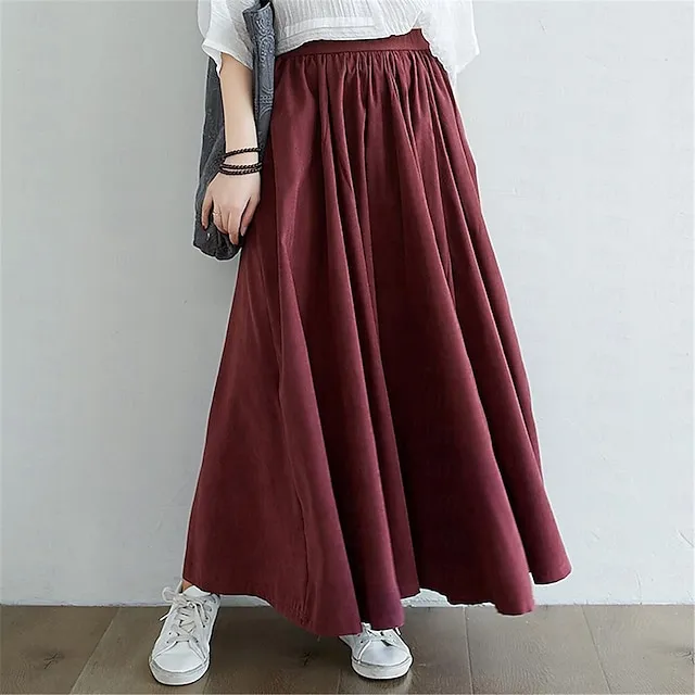 Women’s Skirt Swing Long Skirt Maxi Cotton Linen Black Wine Purple Brown Skirts Spring & Summer Ruched Ruffle Fashion Casual Street Daily S M L