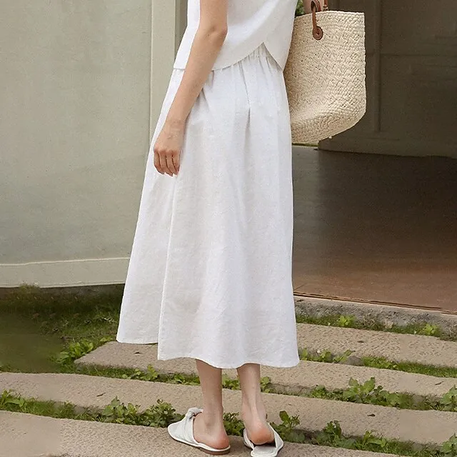 Women’s Skirt A Line Swing Midi Linen Cotton Blend Black White Skirts Summer Fashion Casual Daily Holiday S M L