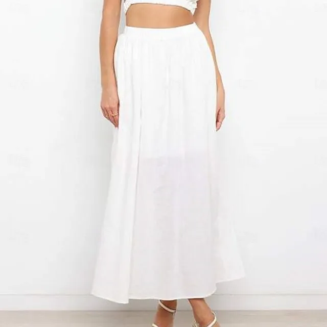 Women’s Pleated Long Skirt Linen / Cotton Blend Black White Pink Blue Skirts Spring & Summer Ruched Fashion Casual Daily Going out One-Size