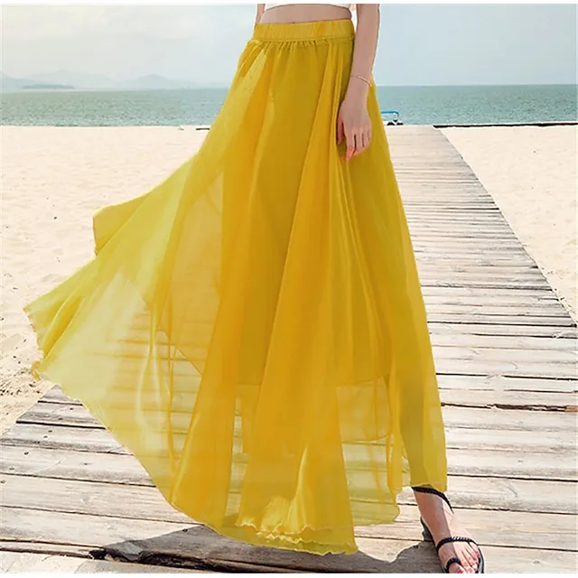 Women’s Skirt Maxi Chiffon Swing Long Skirt Black White Yellow Pink Skirts Layered Fashion Casual Vacation Beach M L XL