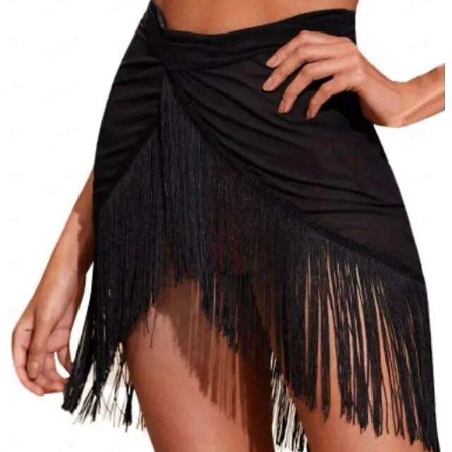 Women’s Cover Up Mini Skirts Tassel Crochet Plain Sports & Outdoor Vacation Summer Polyester Beach Wear Holiday Summer Black White Green Rose Red