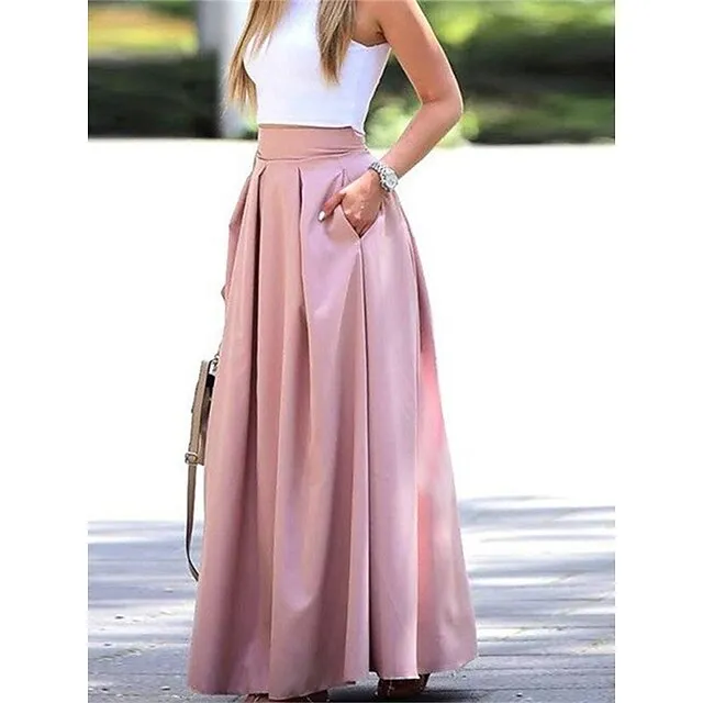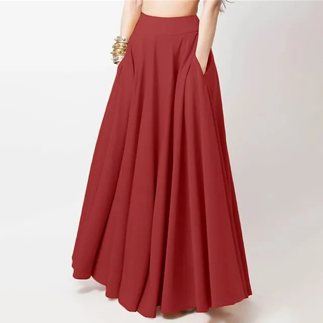 Women’s Skirt Maxi Pleated Black Yellow Pink Red Skirts Pocket Fashion Casual Daily Date M L XL