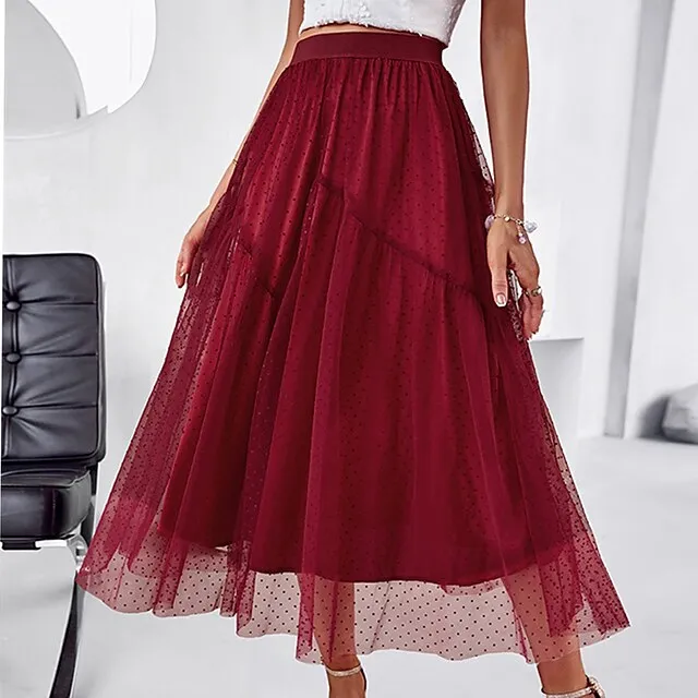 Women’s Skirt Long Skirt Midi Tulle Wine Red Pink Blue Skirts Fall & Winter Ruched Fashion Elegant Street Daily M L XL