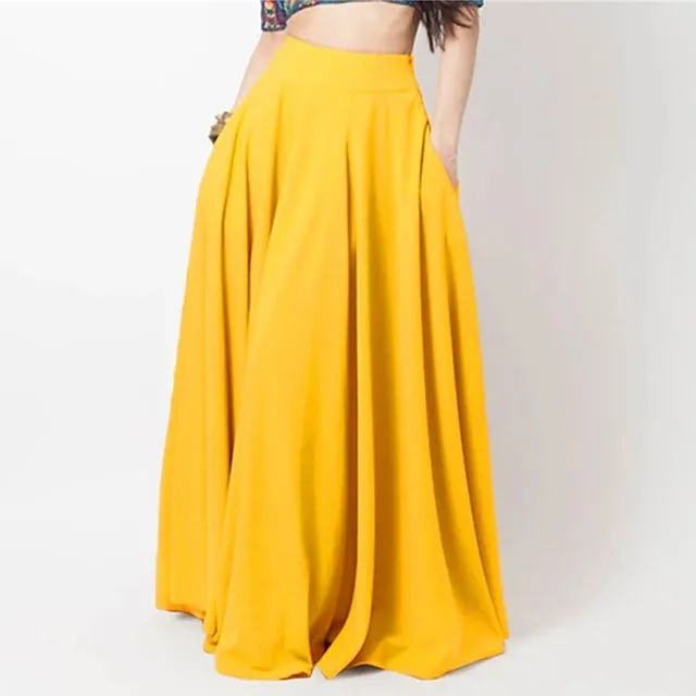 Women’s Skirt A Line Swing Long Skirt Maxi Polyester Black Yellow Red Skirts Spring & Summer Pleated Pocket High Waist Fashion Casual Street Daily S M L