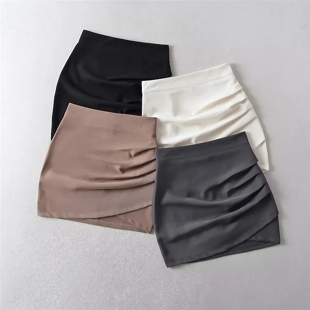 Women’s Skirt Bodycon Mini Cotton Black Khaki Dark Grey Beige Skirts Winter Ruched Fashion Sexy Street Daily S M L