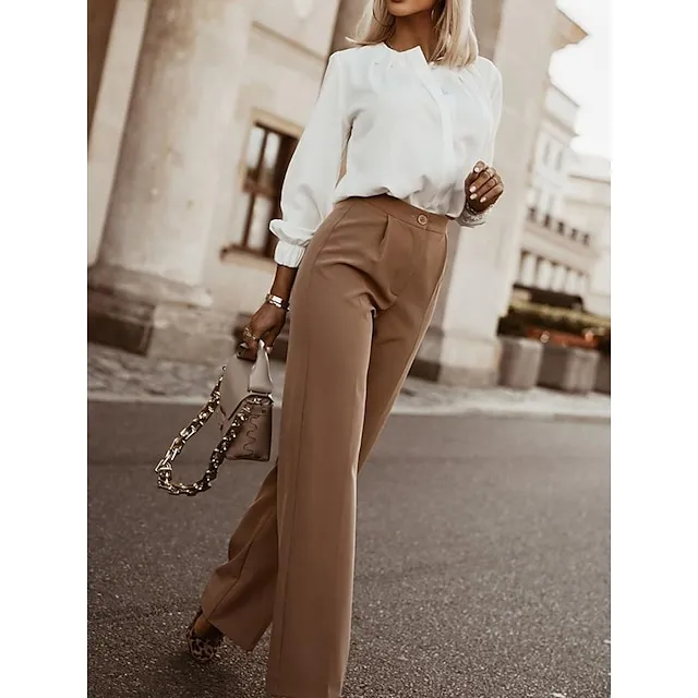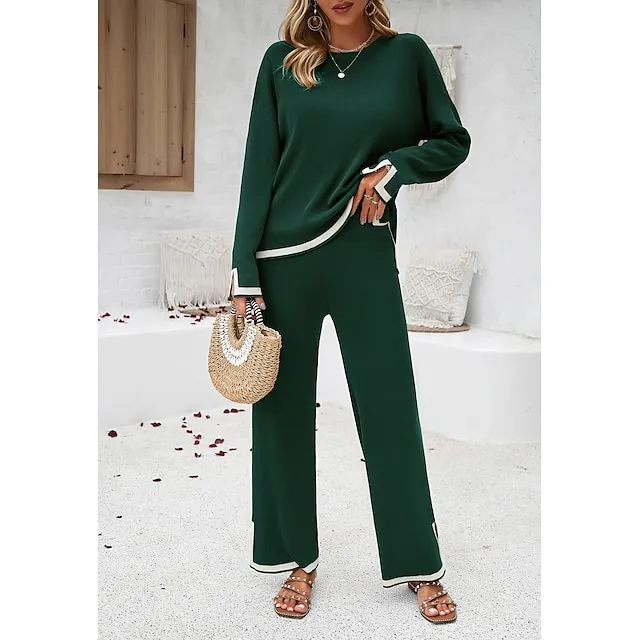 Shirt Pants Sets Women’s Black Brown Green Plain Split Casual Daily Fashion Round Neck Regular Fit S