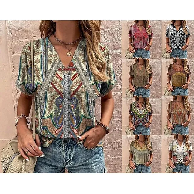 Shirt Blouse Women’s Khaki Leopard Print Lace up Printing Street Daily Fashion Daily V Neck Regular Fit S