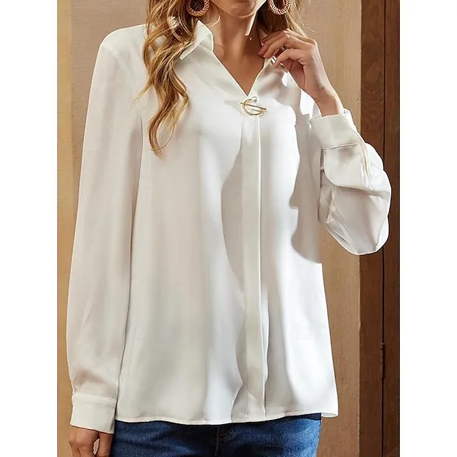 Shirt Blouse Women’s Black White Wine Solid Color Button Street Daily Fashion V Neck S