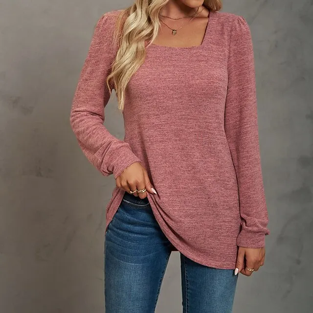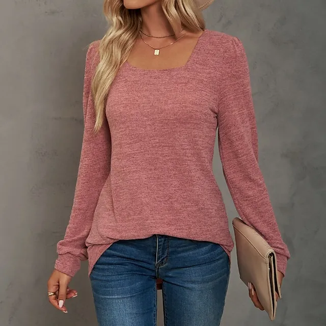 T shirt Tee Women’s Black Pink Blue Solid / Plain Color Sexy Daily Fashion Square Neck Regular Fit S