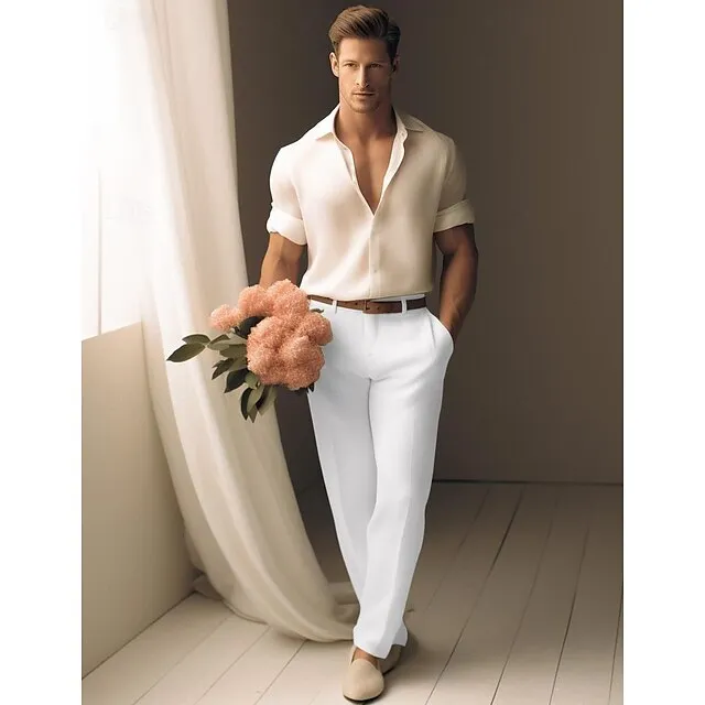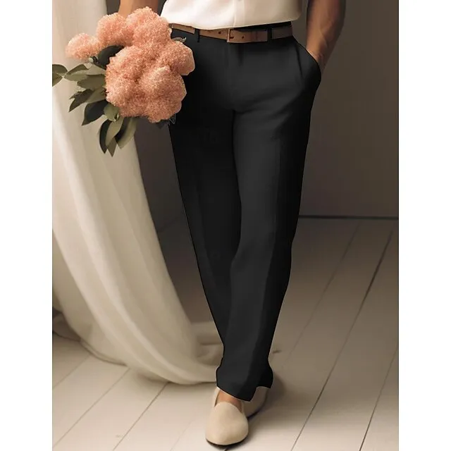 40% Linen Men’s Linen Pants Trousers Summer Pants Pocket Straight Leg Plain Breathable Comfortable Office / Career Daily Vacation Classic Casual Black White