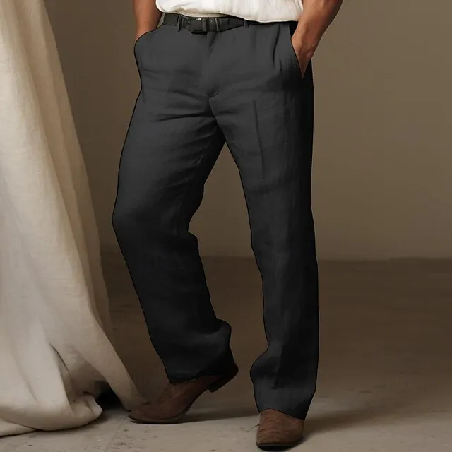 40% Linen Men’s Linen Pants Trousers Summer Pants Pocket Straight Leg Plain Breathable Comfortable Office / Career Daily Vacation Classic Casual Black White