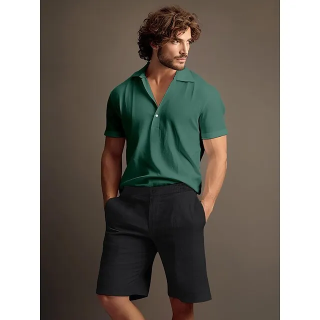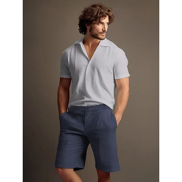 40% Linen Men’s Shorts Linen Shorts Summer Shorts Button Up Pocket Elastic Waist Plain Breathable Comfortable Short Daily Vacation Going out Classic Casual Black White