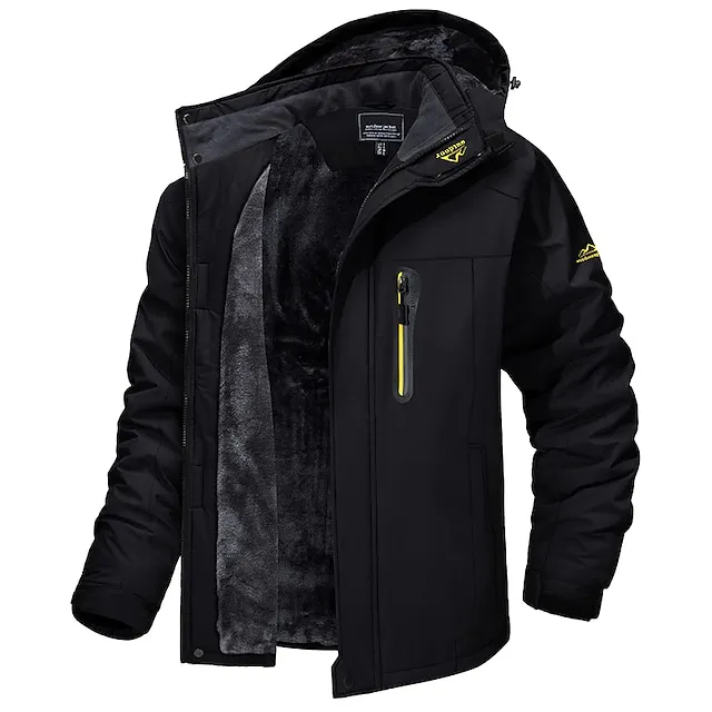 Men’s Hoodie Jacket Ski Jacket Hiking Fleece Jacket Winter Outdoor Thermal Warm Fleece Lining Waterproof Windproof Outerwear Windbreaker Trench Coat Skiing Ski / Snowboard Fishing Black men Red men