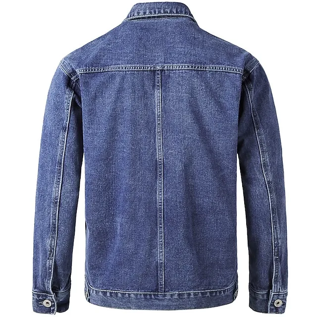 Men’s Denim Jacket Casual Jacket Daily Wear Vacation Soft Durable Button Pocket Spring & Fall Plain Comfort Leisure Lapel Regular Black Blue Gray Jacket