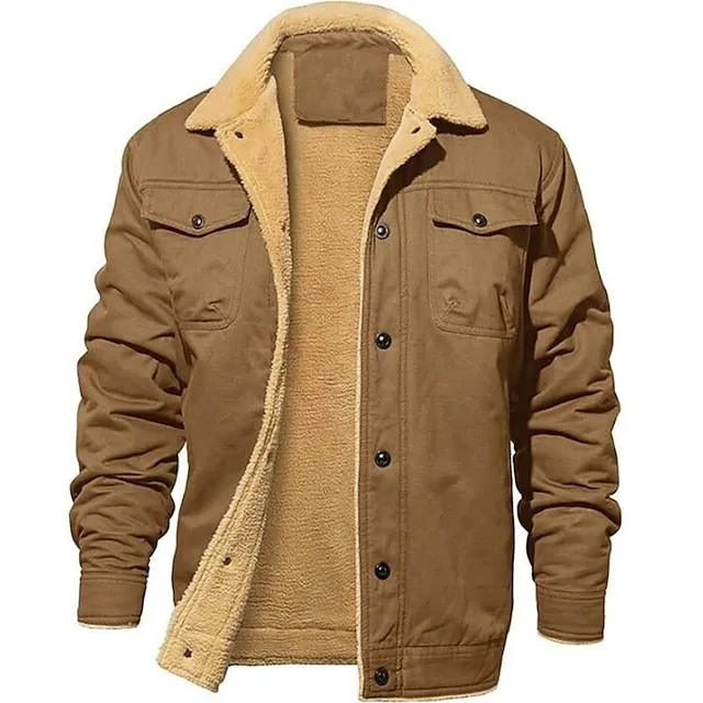 Men’s Winter Coat Winter Jacket Fleece Jacket Work Jacket Daily Wear Vacation Warm Pocket Button-Down Winter Solid / Plain Color Comfort Leisure Turndown Dark-Gray Black Yellow Dark Blue Military