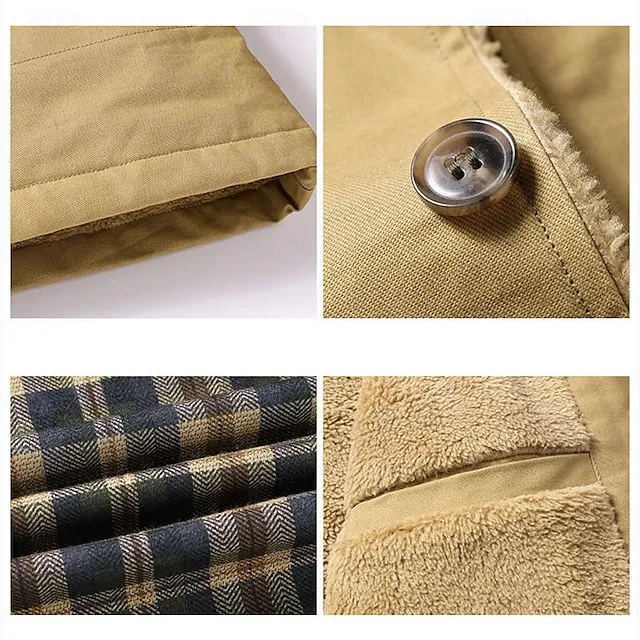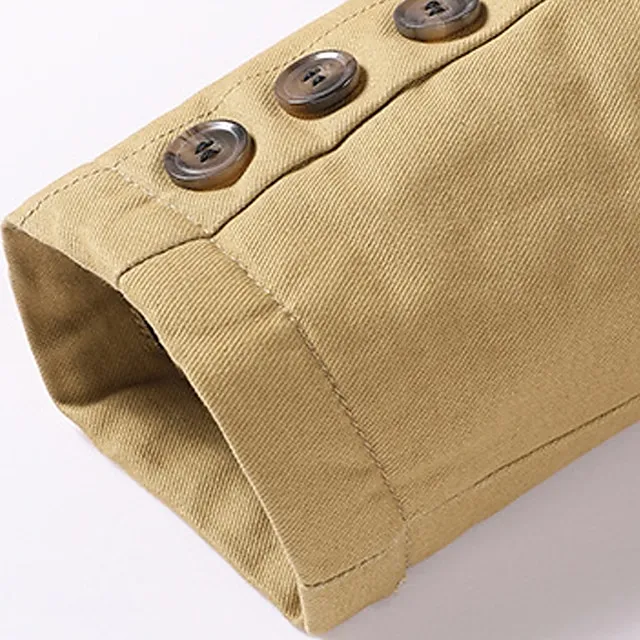 Men’s Outdoor Jacket Cargo Jacket Daily Wear Workfashion Windproof Button Inside Pocket Spring Fall Plain Stylish Business Shirt Collar Regular Cotton Black khaki Army Green Jacket