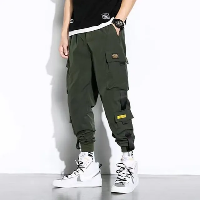 Men’s Cargo Pants Cargo Trousers Joggers Trousers Patchwork Zipper Pocket Solid Color Comfort Breathable Casual Daily Streetwear Sports Fashion Black White Micro-elastic
