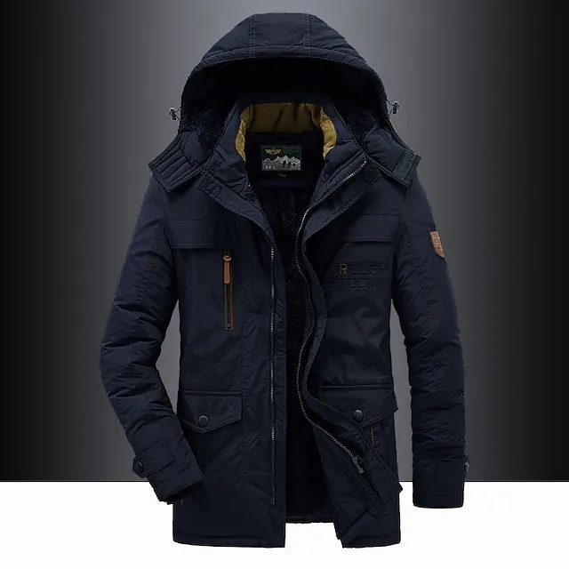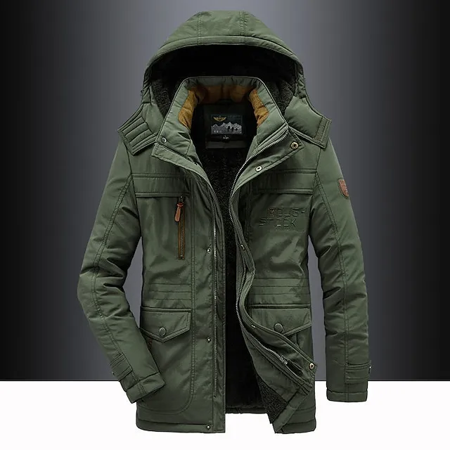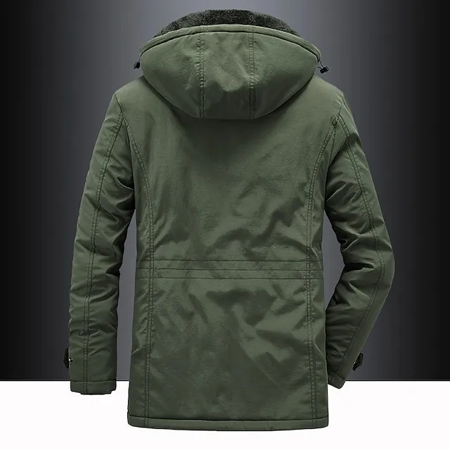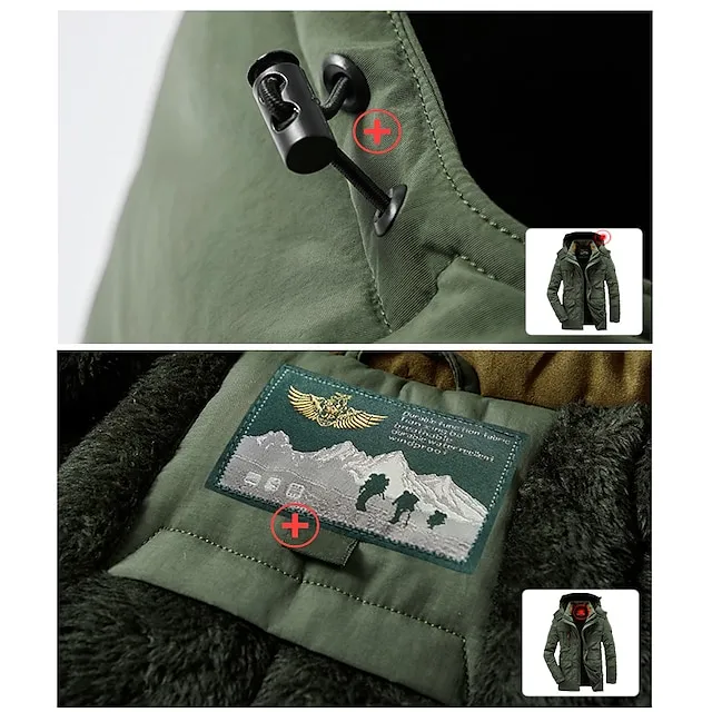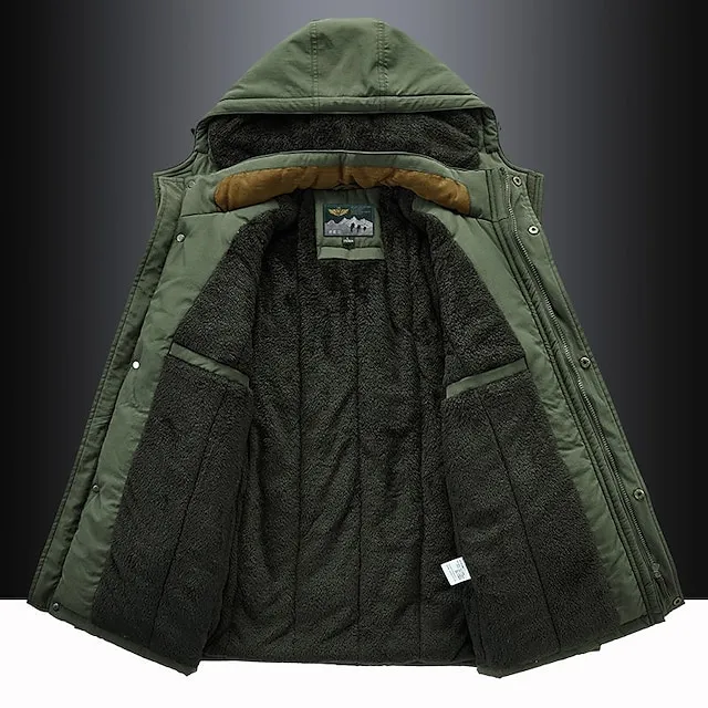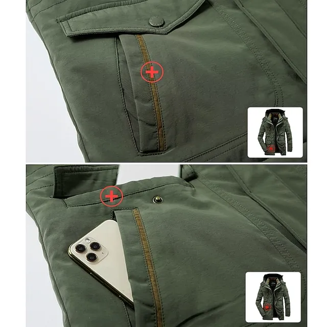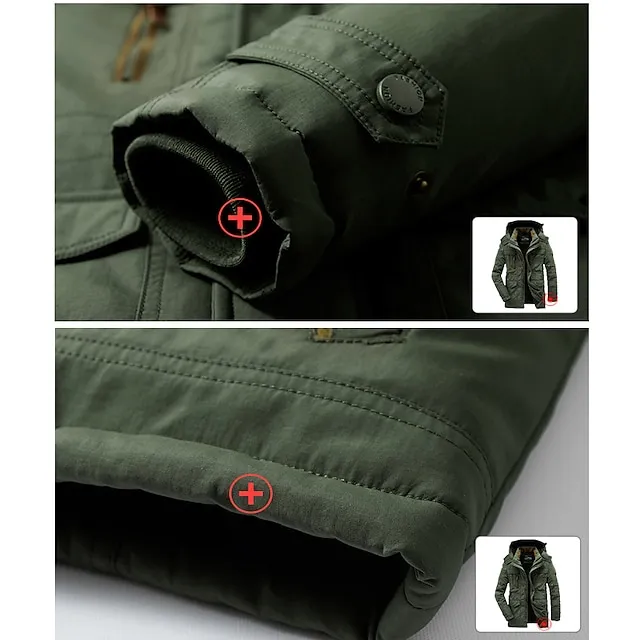 Men’s Hiking Fleece Jacket Winter Jacket Thick Warm Hooded Parka Military Windbreaker Outdoor Detachable Cap Black Trench Coat Outerwear Hunting Ski Snowboard Camping Caving Army Green Khaki Blue
