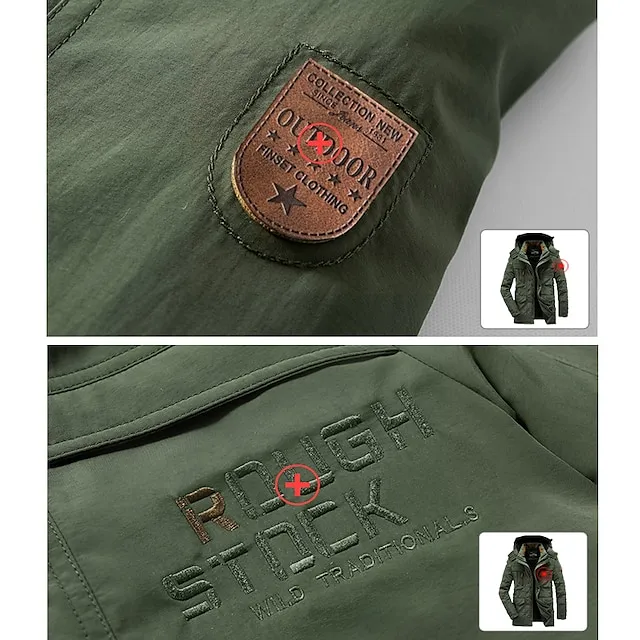 Men's Cargo Jacket Hoodied Jacket Tactical Jacket Sports & Outdoor Fishing Thermal Warm Windproof Patchwork Autumn / Fall Letter Sporty Turndown Regular Army Green Blue Khaki Jacket