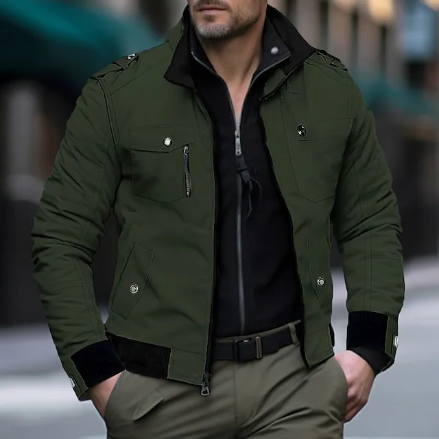 Men’s Bomber Jacket Casual Jacket Work Jacket Outdoor Daily Wear Wearable Pocket Spring & Fall Plain Fashion Streetwear Standing Collar Short Black Red Blue Khaki Army Green Jacket