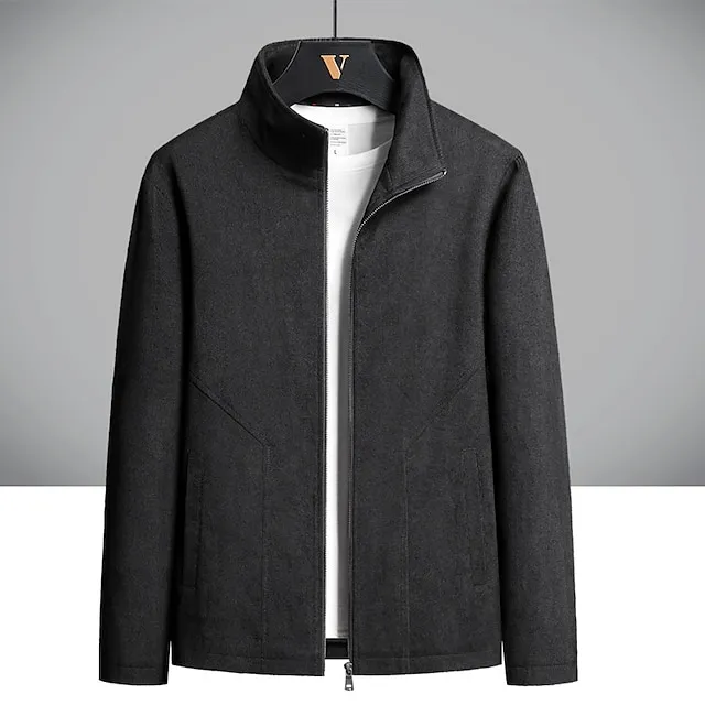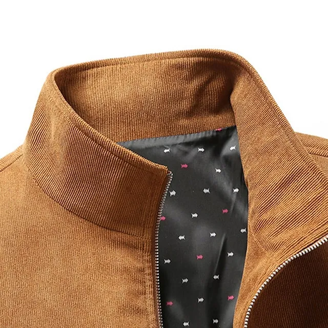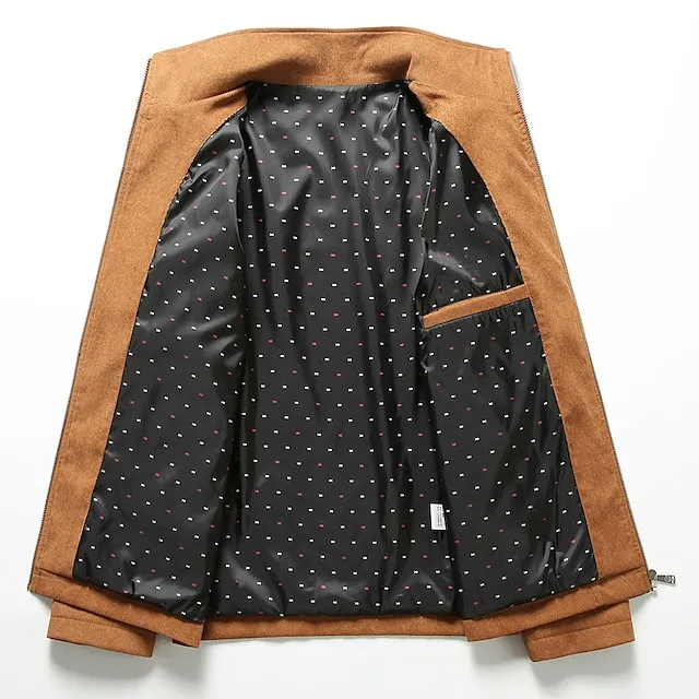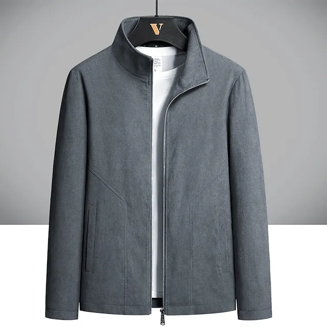 Men’s Brown Suede Jacket Outdoor Daily Wear Durable Casual / Daily Pocket Fall Winter Solid / Plain Color Comfort Leisure Stand Collar Black Coffee Gray Jacket