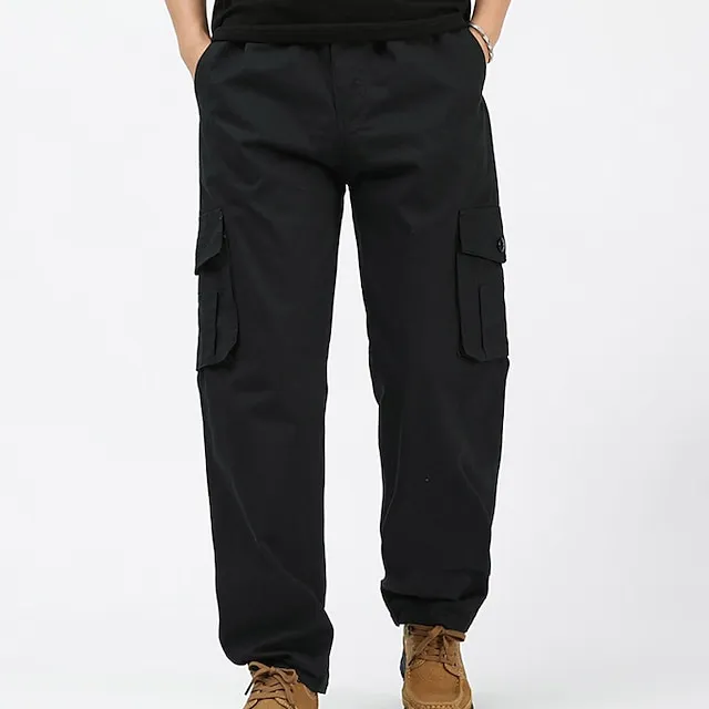 Men’s Cargo Pants Cargo Trousers Trousers Elastic Waist Multi Pocket Straight Leg Multi Color Outdoor Sports Full Length Daily Wear Casual ArmyGreen Black Inelastic