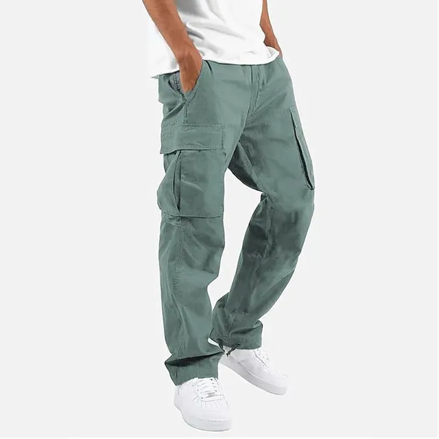 Men’s Cargo Pants Cargo Trousers Trousers Drawstring Elastic Waist Multi Pocket Plain Comfort Breathable Casual Daily Fashion Streetwear Black Light Green