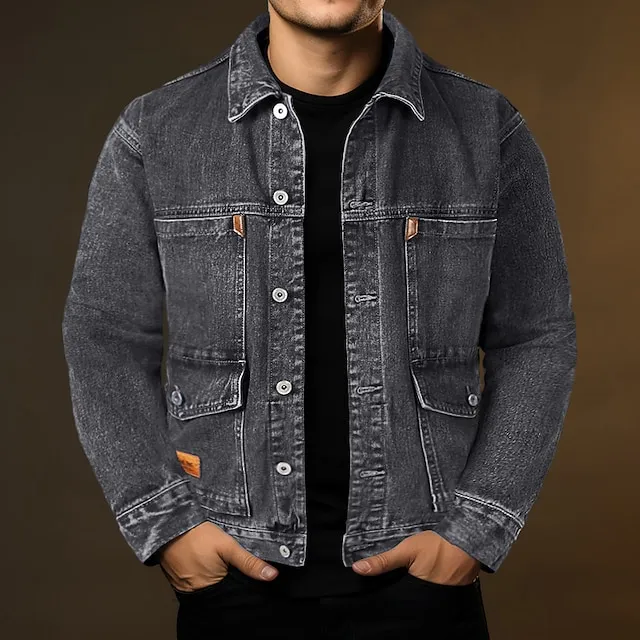 Men’s Jacket Denim Jacket Outdoor Daily Wear Pocket Spring & Fall Plain Fashion Streetwear Lapel Regular Black Blue Gray Jacket