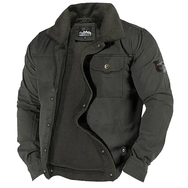 Men’s Winter Coat Sherpa Jacket Pocket Office & Career Date Casual Daily Outdoor Casual Sports Winter Plain Blue Green Khaki Puffer Jacket