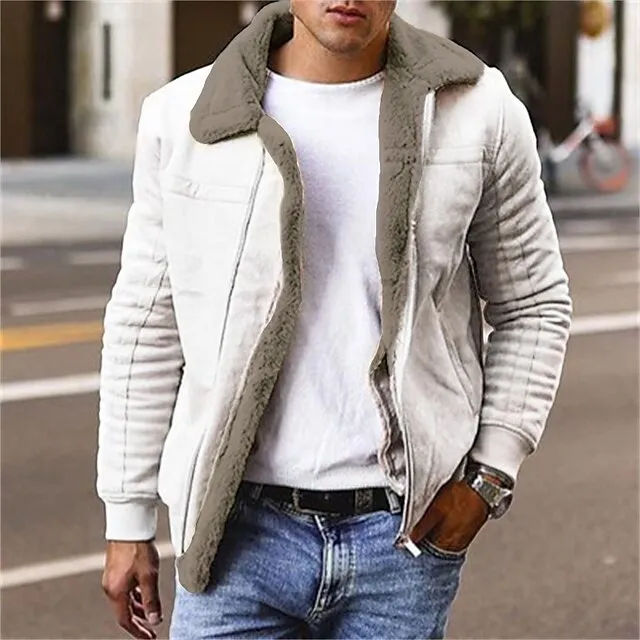 Men’s Winter Jacket Fleece Jacket Sherpa Jacket Outdoor Daily Wear Warm Zipper Pocket Fall Winter Plain Fashion Streetwear Lapel Regular Black Blue Khaki Grey Jacket
