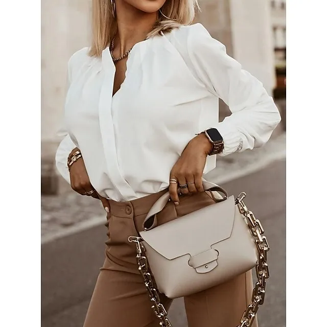 Women’s Shirt Going Out Tops Blouse Concert Tops Floral Plain Daily White Print Ruffle Button Long Sleeve Streetwear V Neck Spring Fall