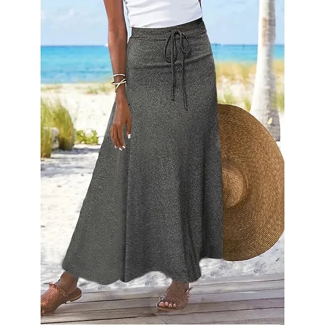 Women’s Long Skirt Cotton Black Grey Skirts Split Ends With Drawstring Basic Casual Daily Vacation Spring Summer S M L