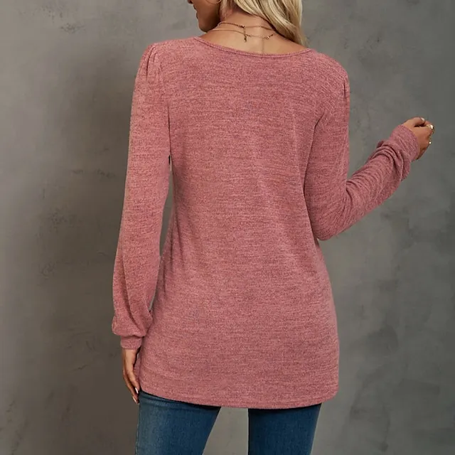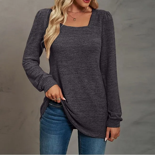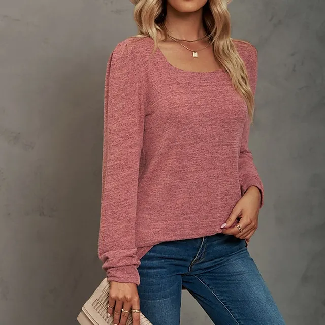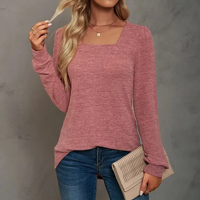 T shirt Tee Women’s Black Pink Blue Solid / Plain Color Sexy Daily Fashion Square Neck Regular Fit S