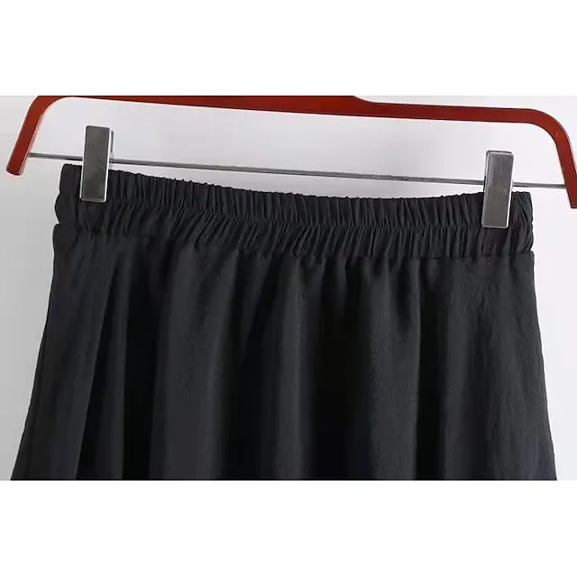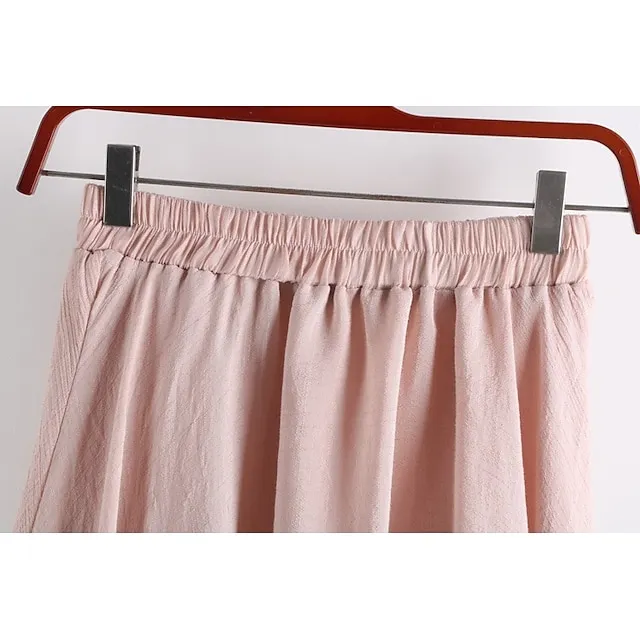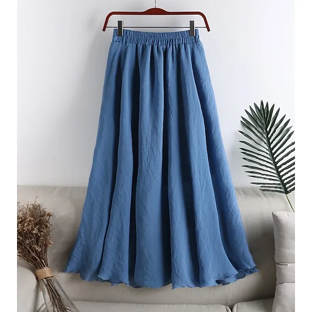 Women’s Pleated Long Skirt Linen / Cotton Blend Black White Pink Blue Skirts Spring & Summer Ruched Fashion Casual Daily Going out One-Size