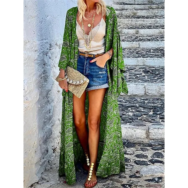 Women’s Shirt Blouse Floral Casual Holiday Red Blue Green Print Long Sleeve Boho Halter Neck Regular Fit Summer Spring