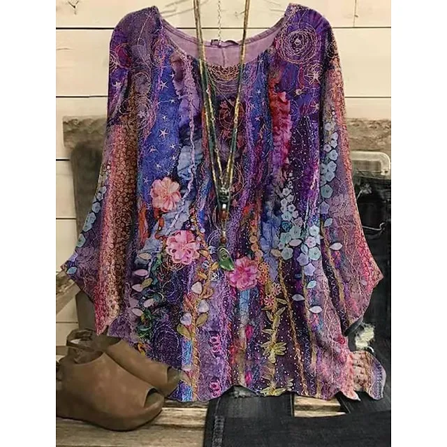 Women’s Shirt Blouse Floral Holiday Weekend Dolman Sleeve Yellow Pink Blue Print Long Sleeve Streetwear Casual Round Neck Regular Fit Spring Fall