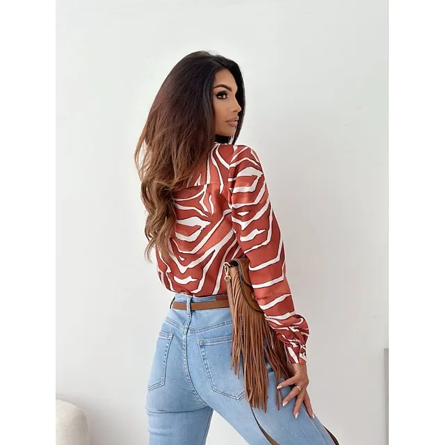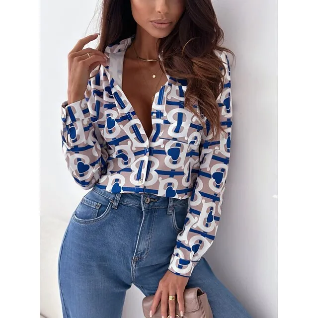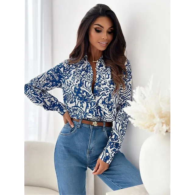 Women’s Shirt Blouse Graphic Casual White Button Print Long Sleeve Elegant Fashion Daily Shirt Collar Regular Fit Fall & Winter