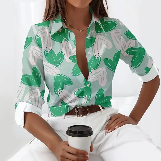 Women’s Shirt Blouse Heart Casual Going out Red Blue Purple Button Print Long Sleeve Fashion Shirt Collar Regular Fit Spring & Fall