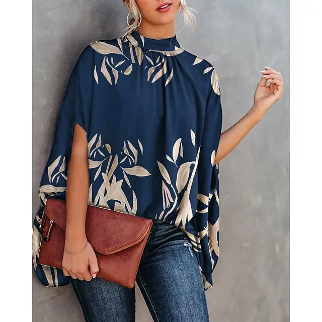 Women’s Shirt Blouse Tie Dye Letter Portrait Casual Going out Black Light Brown Blue Print Short Sleeve Elegant Fashion Streetwear Turtleneck High Neck Loose Fit