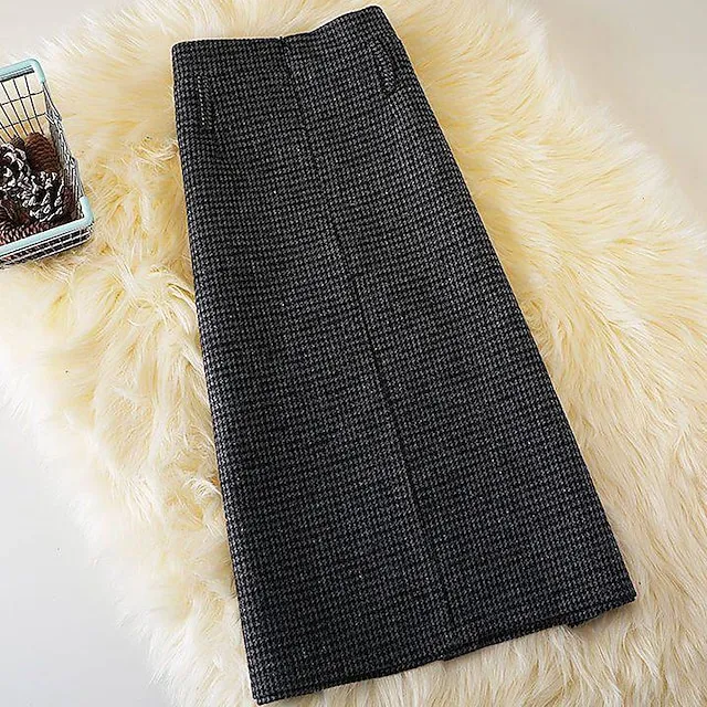 Women’s Skirt A Line Maxi Tweed Black Khaki Button Skirts Fall & Winter Patchwork Belt Included Fashion Elegant Street Daily M L XL