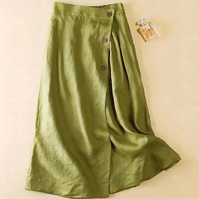 Women’s Skirt A Line Midi Cotton Linen Linen Apricot Black Navy Blue Green Skirts Summer Pocket High Waist Basic Casual Casual Daily Weekend M L XL