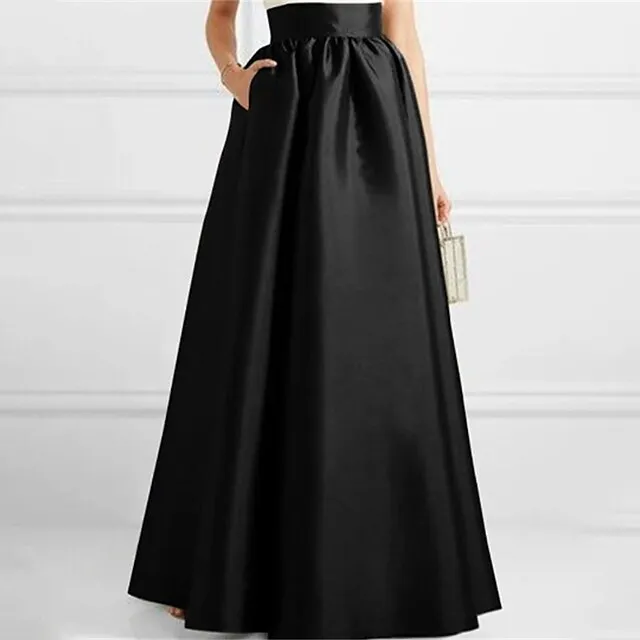 Women’s Skirt A Line Swing Maxi Satin Green Black Red Skirts Fall & Winter Pocket Fashion Elegant Party Date M L XL