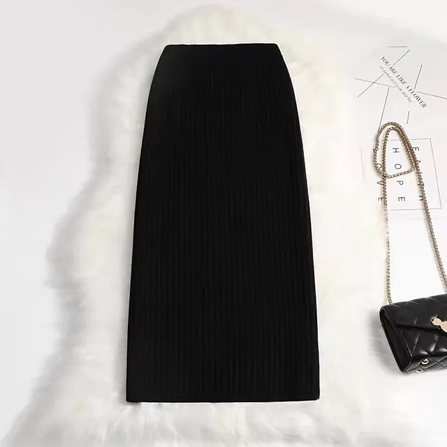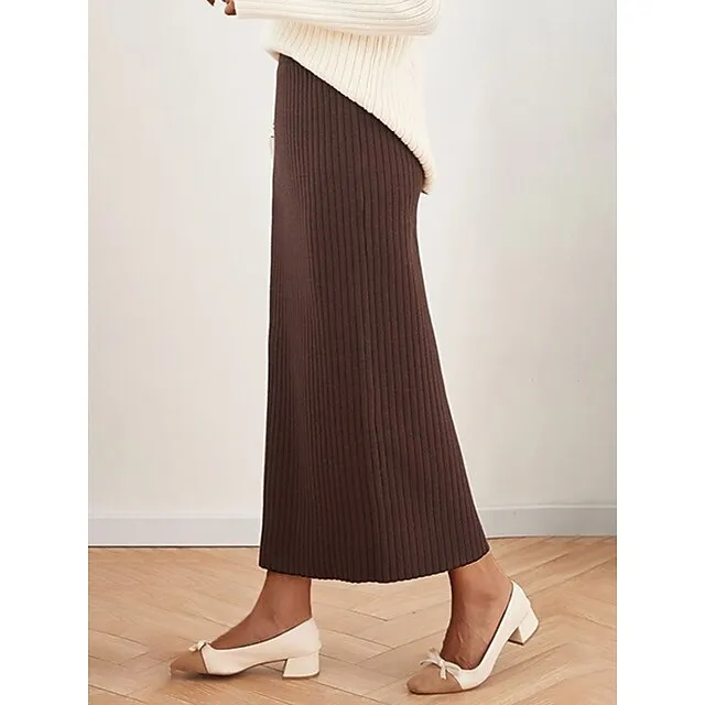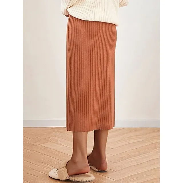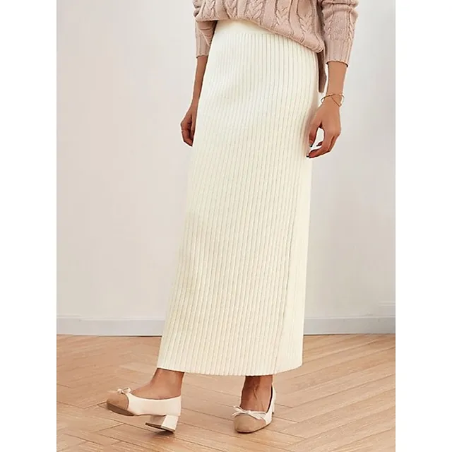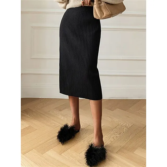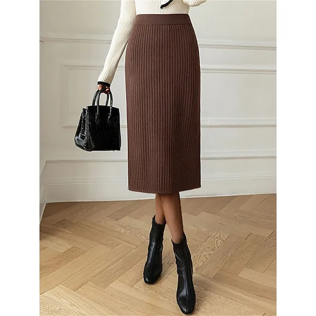 Women’s Skirt Bodycon Midi Acrylic Camel Black White Wine Skirts Winter Pleated Fashion Casual Street Daily One-Size
