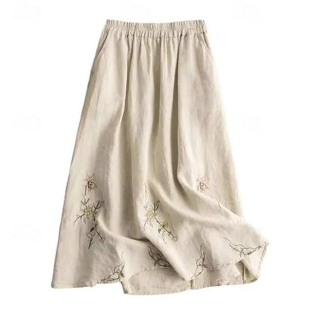 Women’s Skirt Linen Skirts Maxi Cotton And Linen Khaki Skirts Summer Embroidered Fashion Casual Casual Daily Weekend M L XL