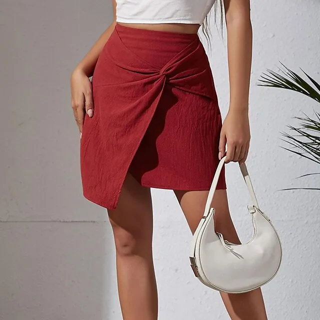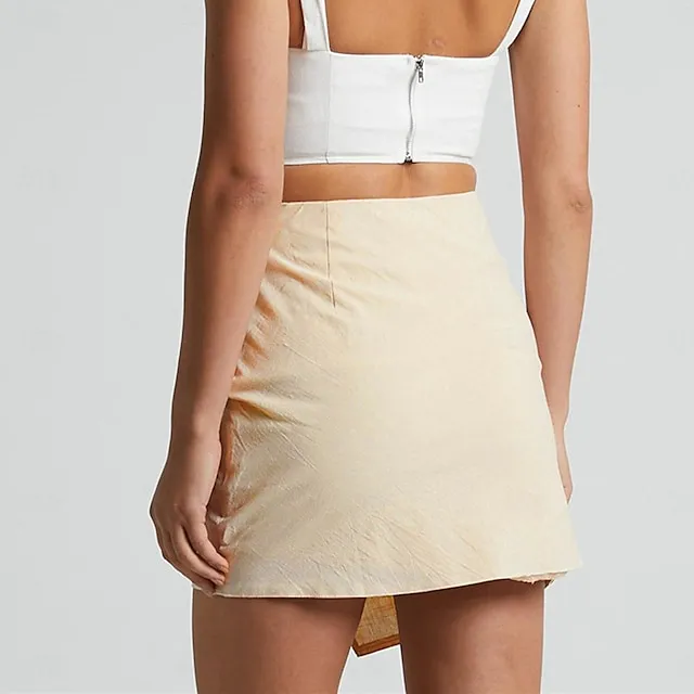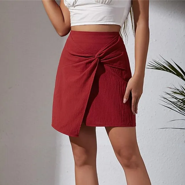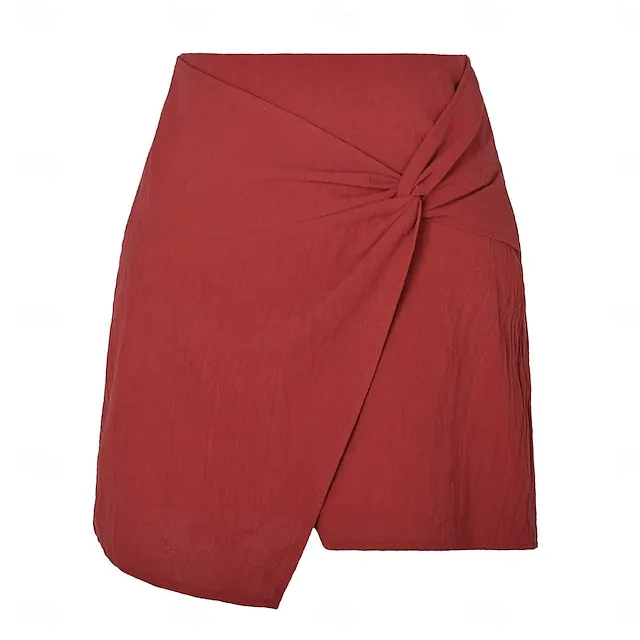 Women’s Skirt Linen Skirts Mini Cotton And Linen Wine Black Army Green Apricot Skirts Summer Split Ends Basic Casual Casual Daily Weekend S M L