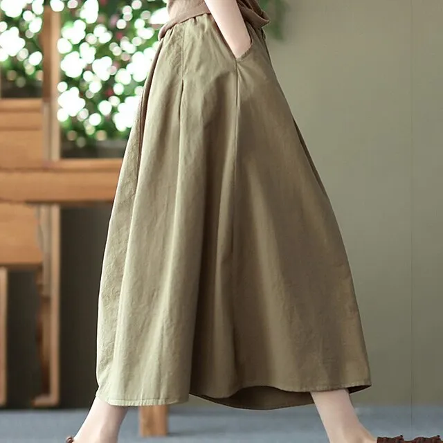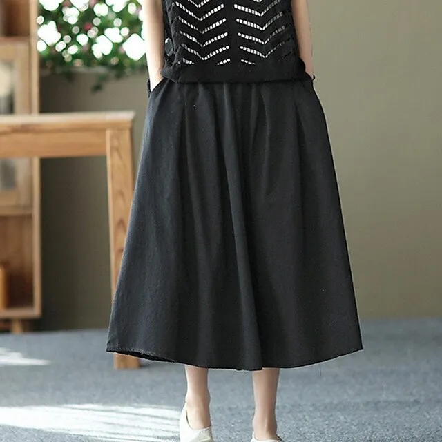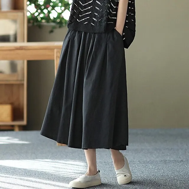 Women’s Skirt Linen Skirts Midi Cotton And Linen Black Pink Blue Khaki Skirts Summer Drawstring Lined Fashion Casual Casual Daily Weekend One-Size